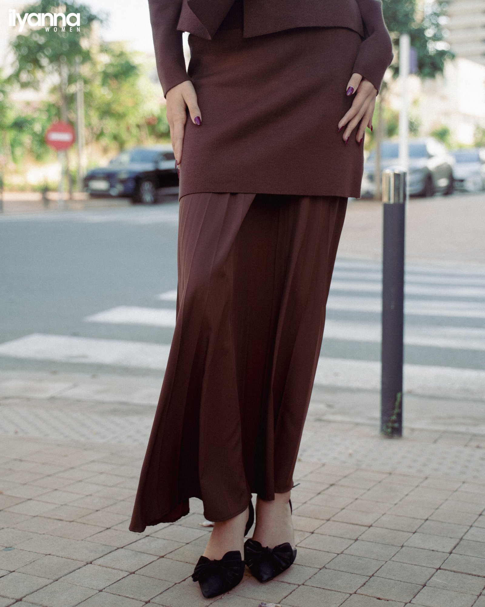 Ensemble Satiné à Épaules Dénudées & Perles