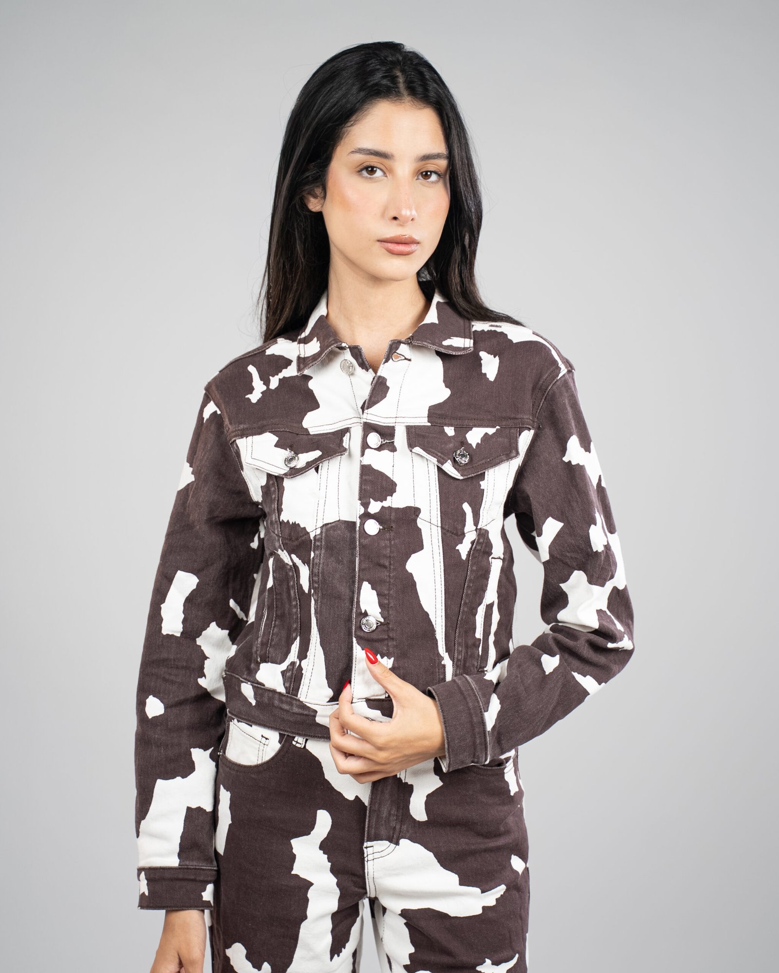 Veste imprimé vache marron et blanc